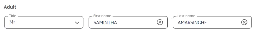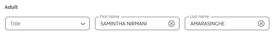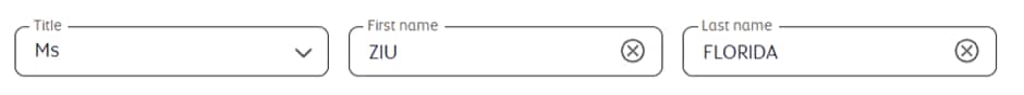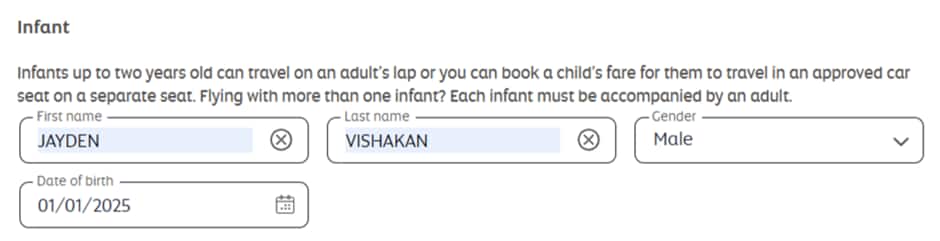 - You can enter up to 59 characters (including spaces, title, infant name, passenger type, and date of birth for the US region) in total across all name fields.