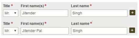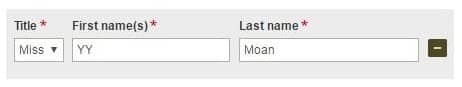 - Enter your given names (first and middle) in the first name field, followed by your title.