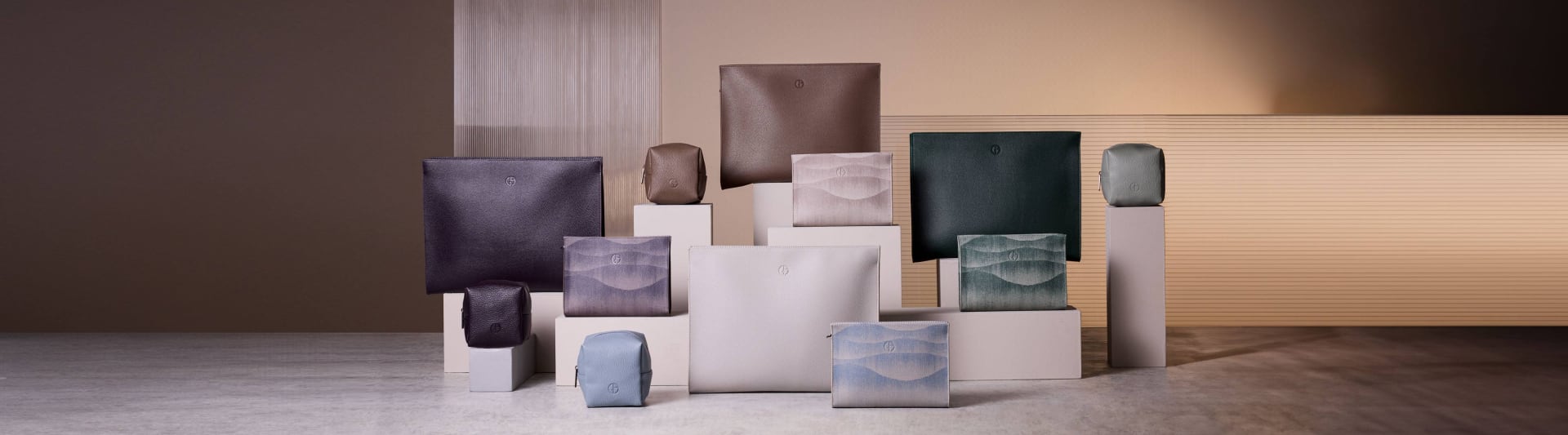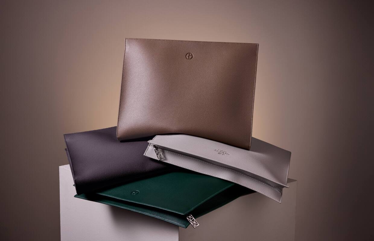In Business Class, collectible, co-branded amenity kits designed by Giorgio Armani come in two unisex styles – a cube and clutch.